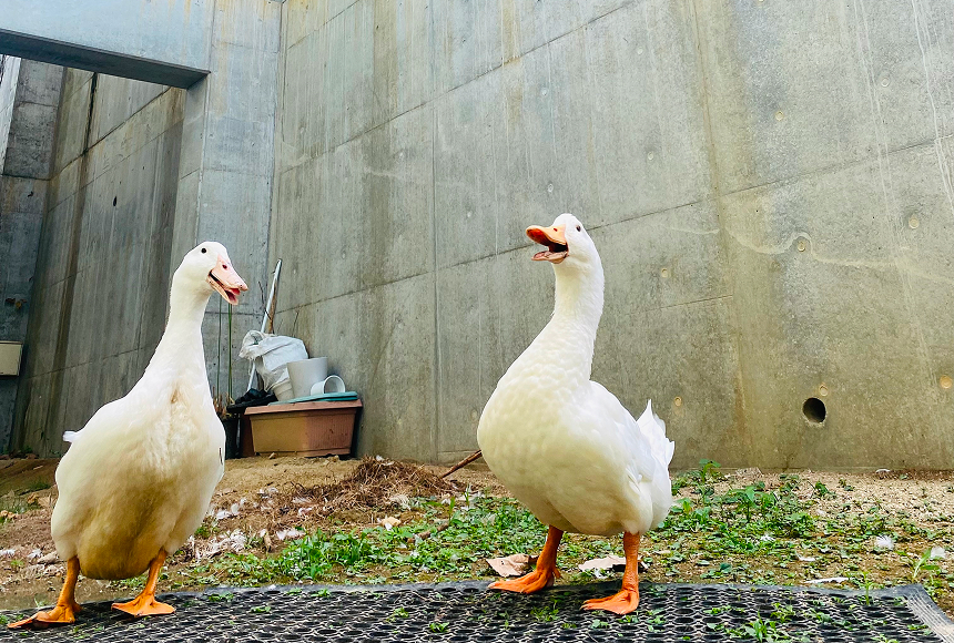 壁画の前を動物(アヒル)がいるオープンテラス空間として整備し、地域の方々に癒しの場を提供します。